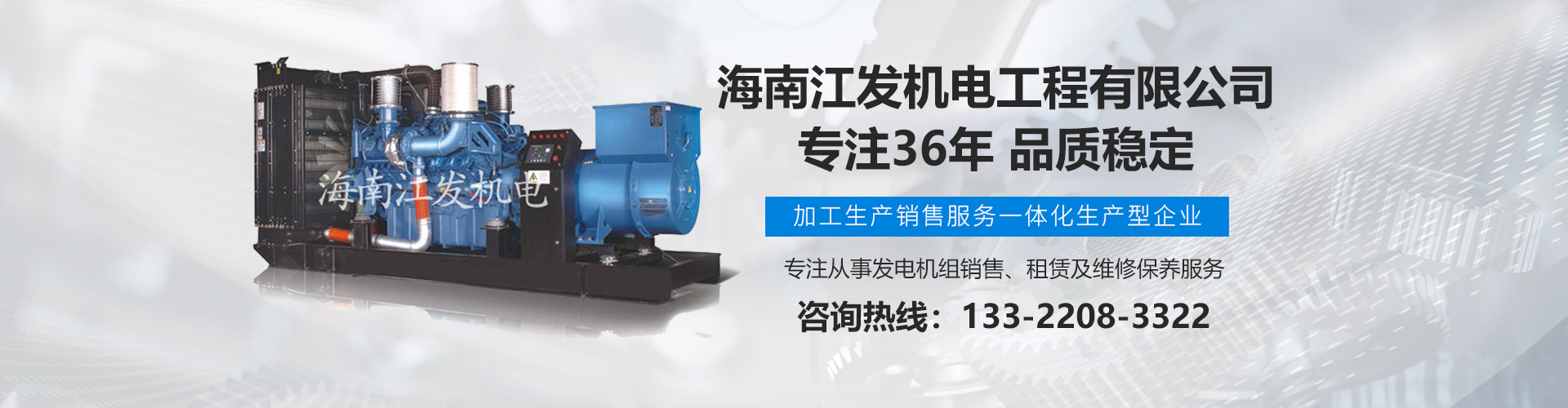 海南江發(fā)機電工程有限公司是海南經(jīng)營進(jìn)口、國產(chǎn)柴油發(fā)電機組、是海南較早、較大的銷售、租賃服務(wù)及維修保養(yǎng)專業(yè)機電公司。從1985年開始,公司勵精圖治、銳意進(jìn)取、不斷創(chuàng)新,不僅在海南機電行業(yè)領(lǐng)域中具有先進(jìn)技術(shù)、完美管理、誠信服務(wù),高超的產(chǎn)品質(zhì)量和性能,而且還有合理的產(chǎn)品性能價格比,令客戶滿意以及完善的支持保障。 在客戶心目中,江發(fā)公司不僅具有最好的企業(yè)信譽,還是客戶最信賴的誠信單位,而且會帶給客戶永遠(yuǎn)的光明和豐厚回報。